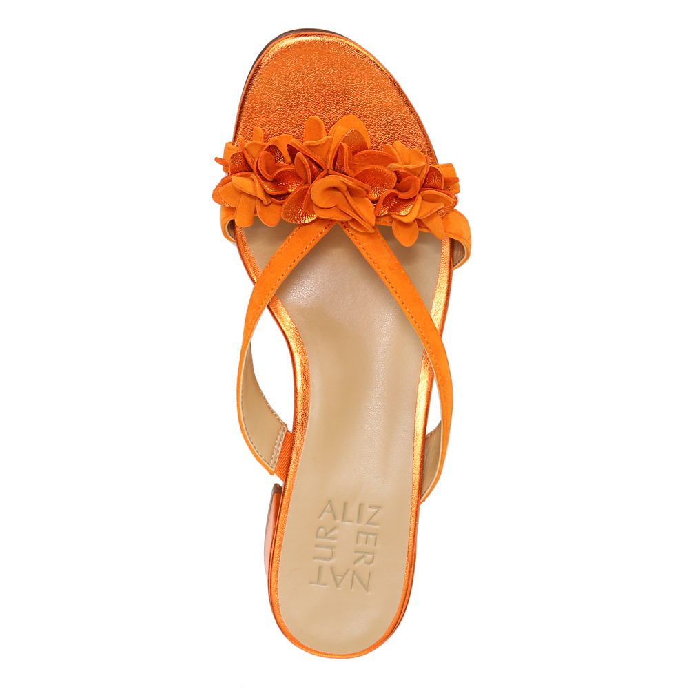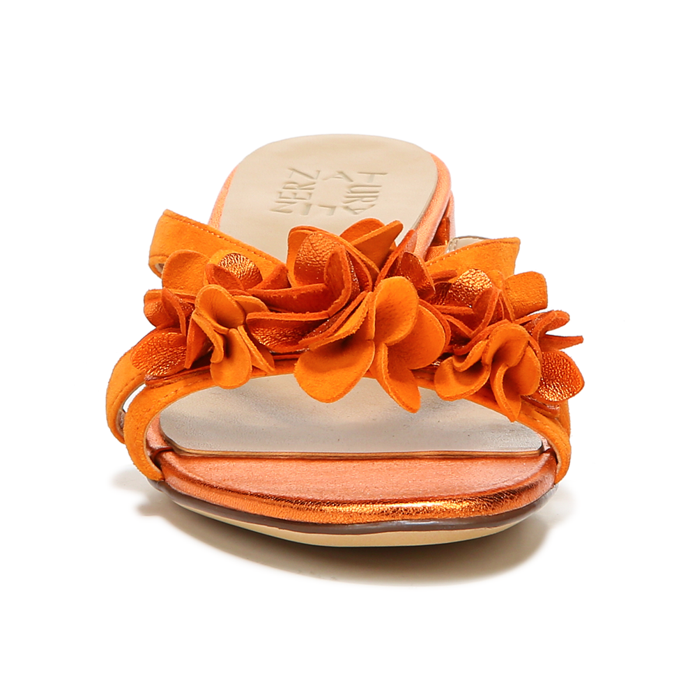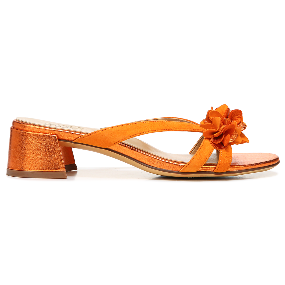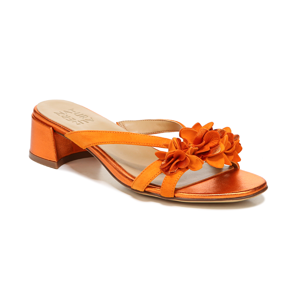 Embrace all things floral this season with a slide sandal featuring a walkable heel.